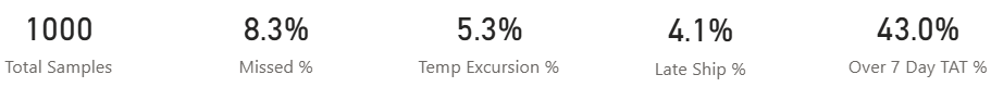 Power BI dashboards were created to summarize operational performance across clinical trial sites, including sample collection quality, shipment timelines, and protocol adherence.